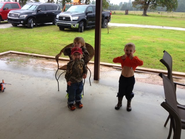 While the girls played inside, the boys played outside. It was rainy and cold, so we told them they could play on the porch. The dry play lasted a while, but we all knew how this would end. Wet, muddy, and cold.