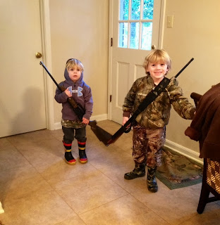Our second Thanksgiving celebration was in Ruston with the Allison side of the family. We had a great time visiting with some family that we hadn't seen in a while and catching up. Ryland had requested that they go hunting for brown or black animals, so the boys layered on the camo and headed to the woods. They came back a short while later, and they hadn't see anything.